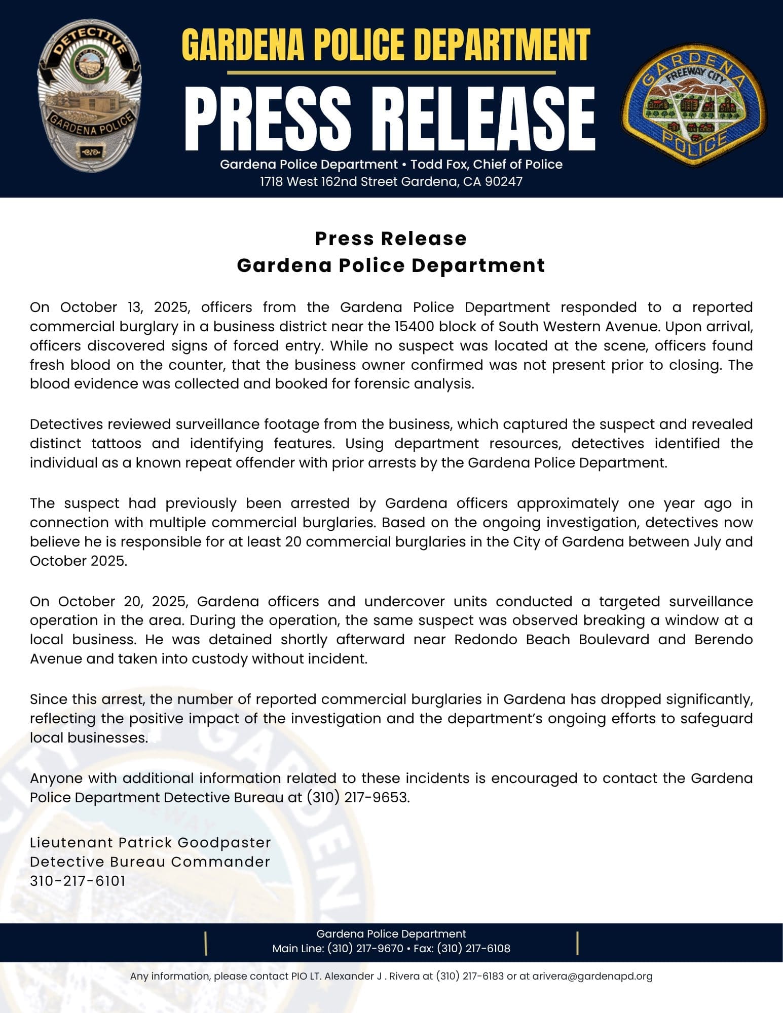 August 13, 2025 Press Release – Motorcycle Pursuit and Arrest