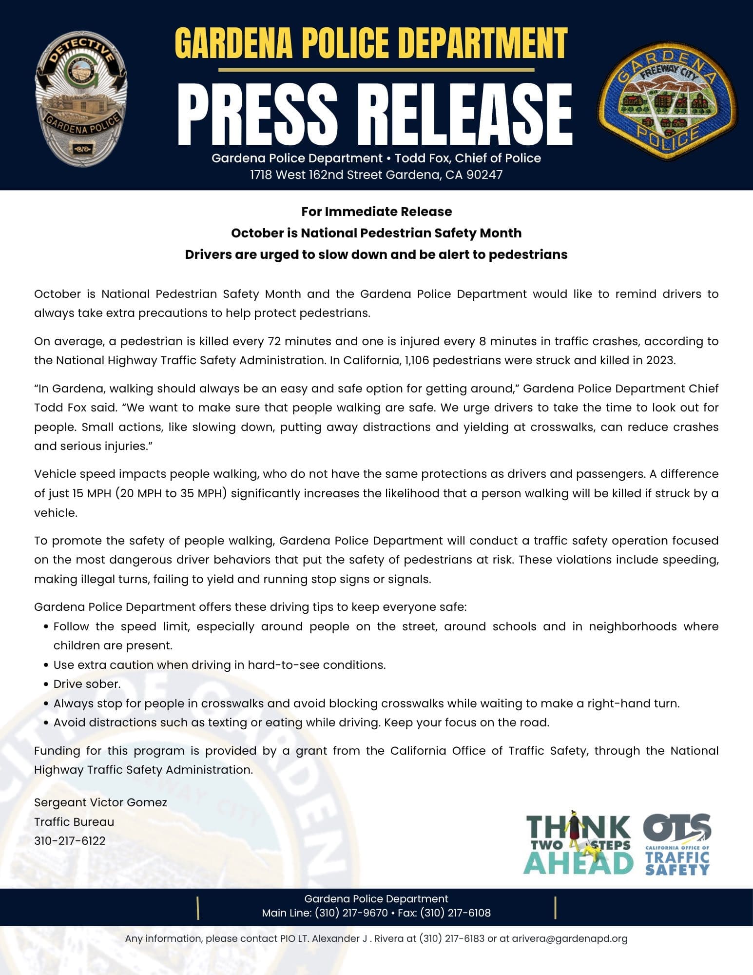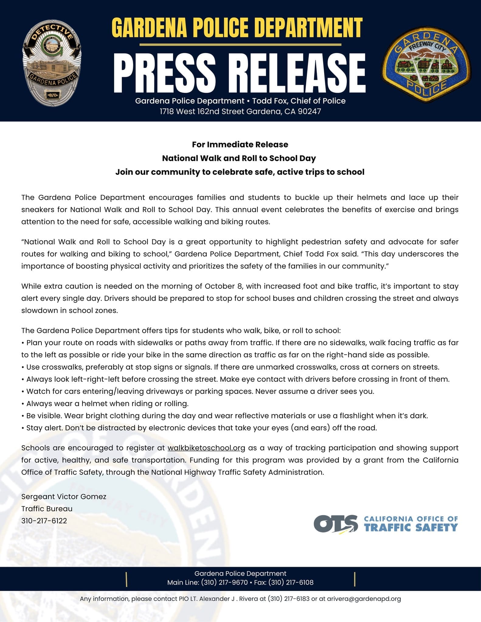October 8, 2025 Press Release – National Walk and Roll to School Day